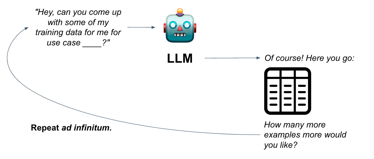 对于因流量低、PII 或其他限制而导致数据不足的应用程序,合成数据生成可能是用于微调数据集的一种可行方案。