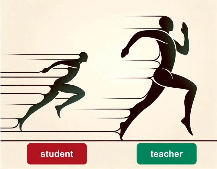 在经典的模型蒸馏设置中,学生模型基于教师模型的原始输出进行训练(也称为模仿学习),通常情况下,学生模型最多只能达到与教师模型相当的水平。