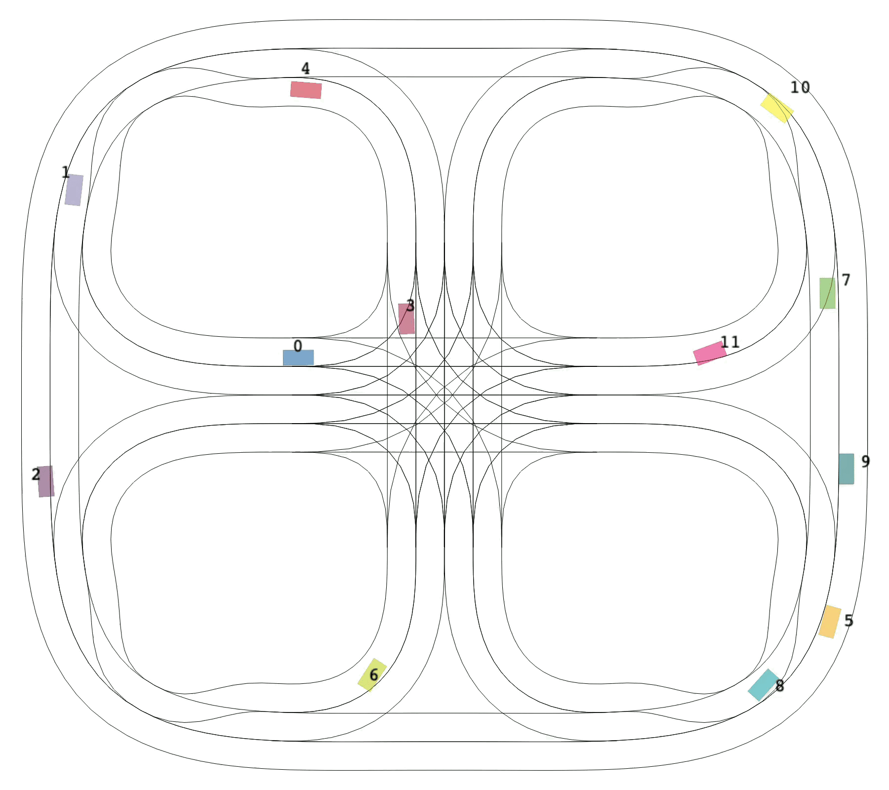此场景提供了一个用于联网自动驾驶车辆(CAVs)的 MARL 基准测试,使用来自网络物理移动实验室(CPM Lab)的高清地图,该实验室是一个面向 CAVs 的开源测试平台。地图包含一个八车道交叉路口和一个环形高速公路,设有多个汇入和驶出匝道,能够模拟多种复杂的交通状况。预先定义了四十条环形参考路径,支持无限时长的仿真运行。您可以初始化最多 100 个智能体,但默认数量为 20。训练过程中如果发生碰撞,场景会重新初始化所有智能体,随机分配新的参考路径、初始位置和速度。这种设置旨在模拟真实驾驶环境中的不可预测性。此外,观测设计注重提升样本效率和泛化能力(即智能体对未见场景的适应能力)。同时,实现了自车视角和鸟瞰视角两种观测方式,并支持部分可观测的马尔可夫决策过程建模。更多信息请参阅 这篇论文。 | ![]() |