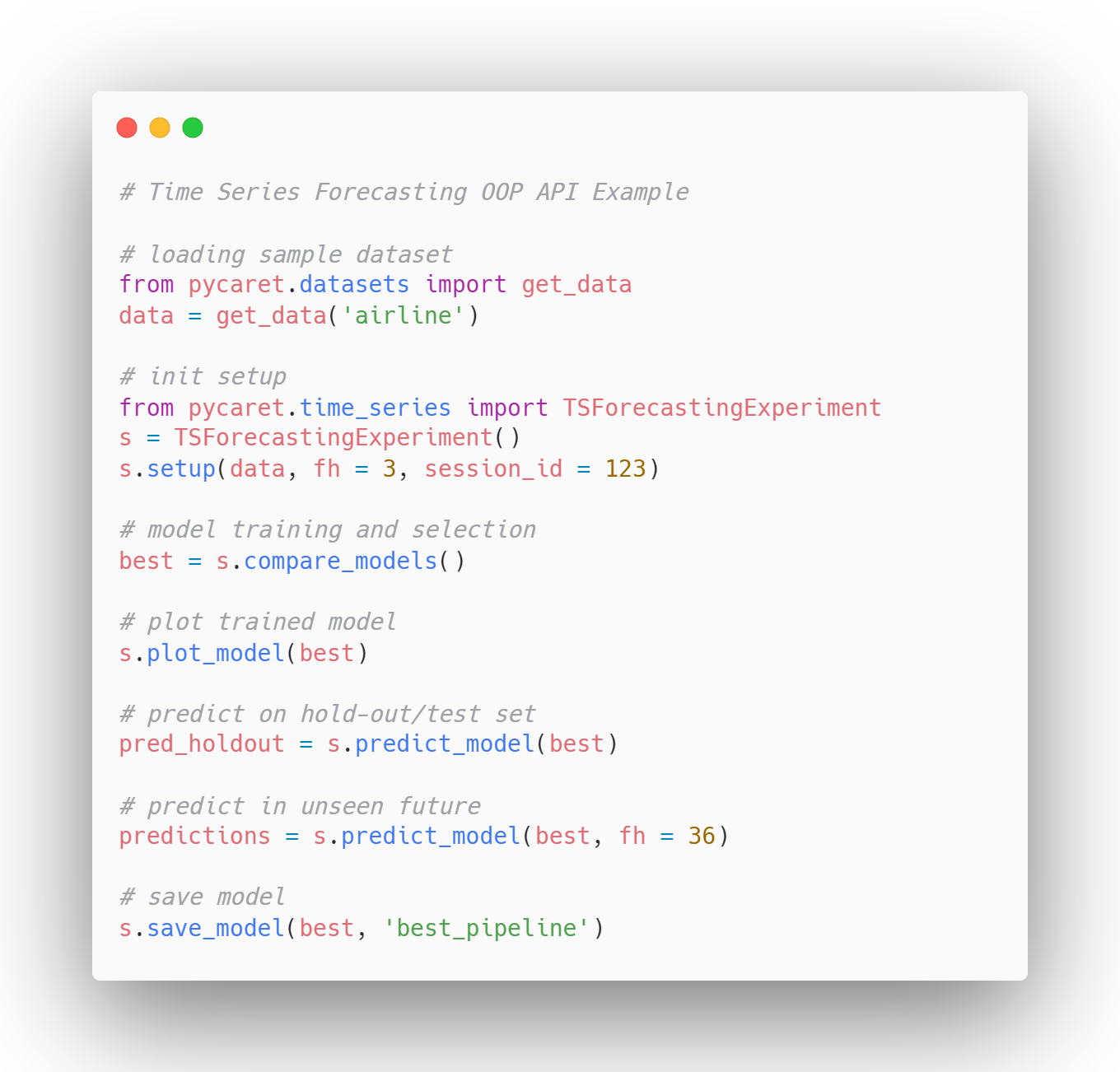 save_model()和load_model(),pycaret 直接将完整流水线(含预处理)打包为文件,随时可集成到生产环境。