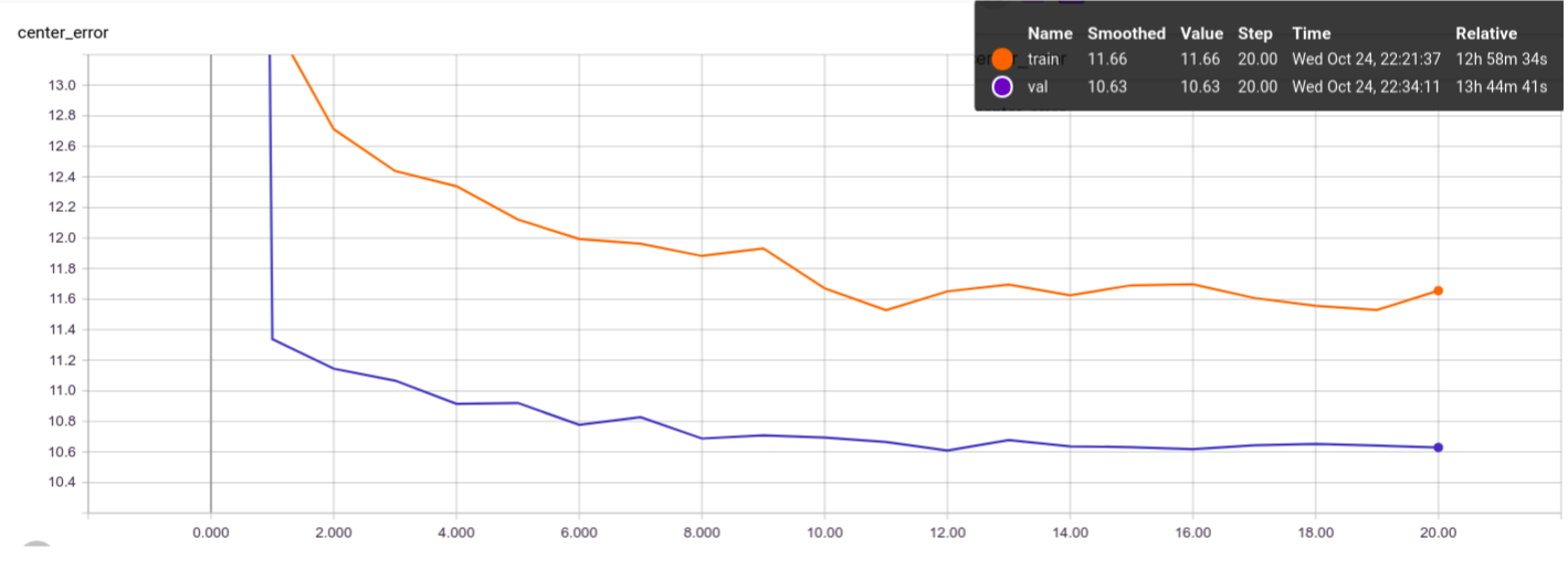 不同参数和实现之间唯一可比较的训练指标是平均中心误差(或称中心位移)。作者在其论文《学习前馈式一次性学习者》的附录B中提供了这一指标,其中验证集上的平均中心误差为7.40像素,训练集上则为6.26像素。