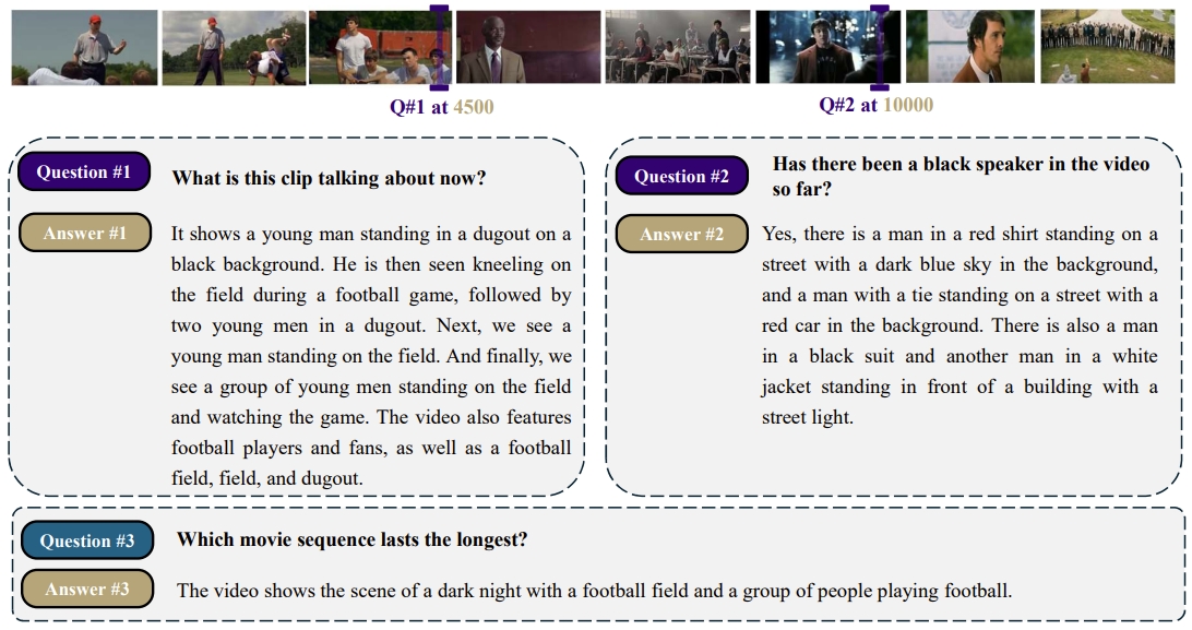 | Streaming Long Video | 在 MovieChat 上训练 | 54.9 | 90.4 |