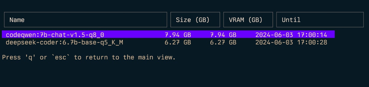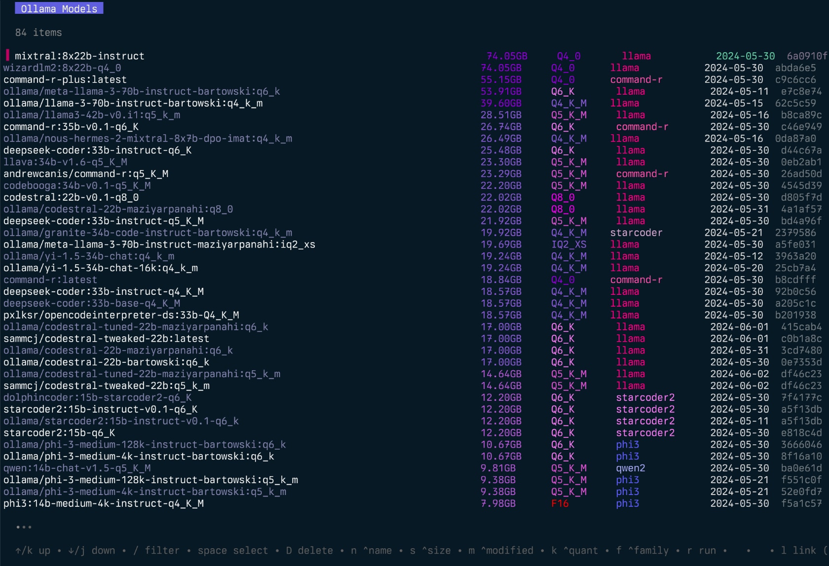 该应用程序允许用户通过热键交互式地选择模型、排序、过滤、编辑、运行、卸载以及对模型执行其他操作。