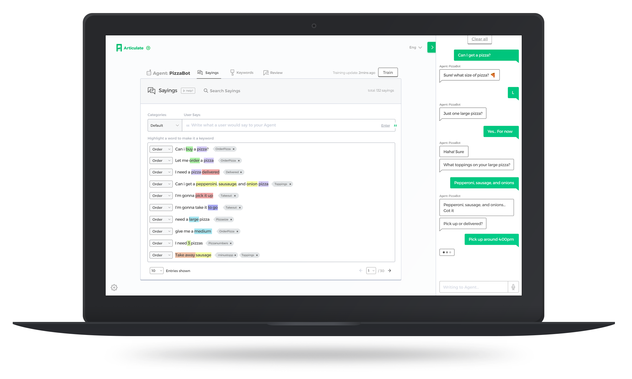 Articulate 是一个用于构建智能体(intelligent agents)对话界面的平台。它主要基于 Rasa NLU(自然语言理解)构建,其内部使用了 Duckling、spaCy 和 tensorFlow(深度学习框架)。它实现了一个自定义的对话管理(dialogue management)解决方案,能够处理深度复杂的对话,但侧重于使用的简便性。