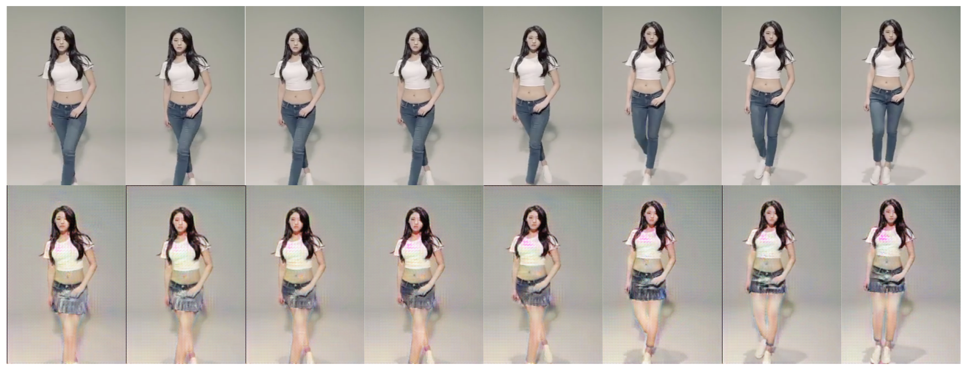 - 多目标处理失效:当画面中出现多位模特或多条裤子时,模型无法独立识别每个实例,往往只转换最显著的目标或产生重影伪影。
