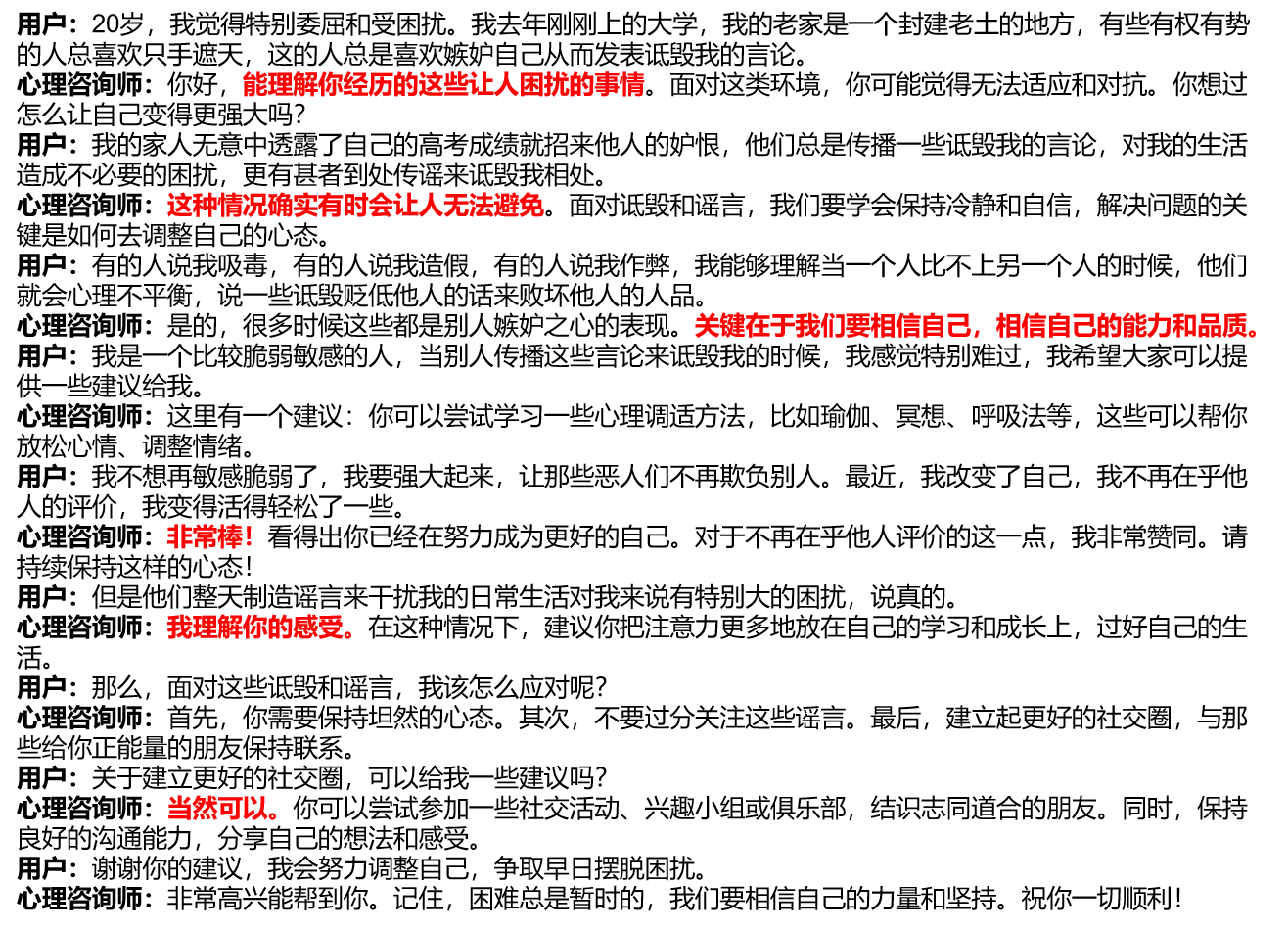 # 注意:本项目使用"\n用户:"和"\n心理咨询师:"划分不同轮次的对话历史