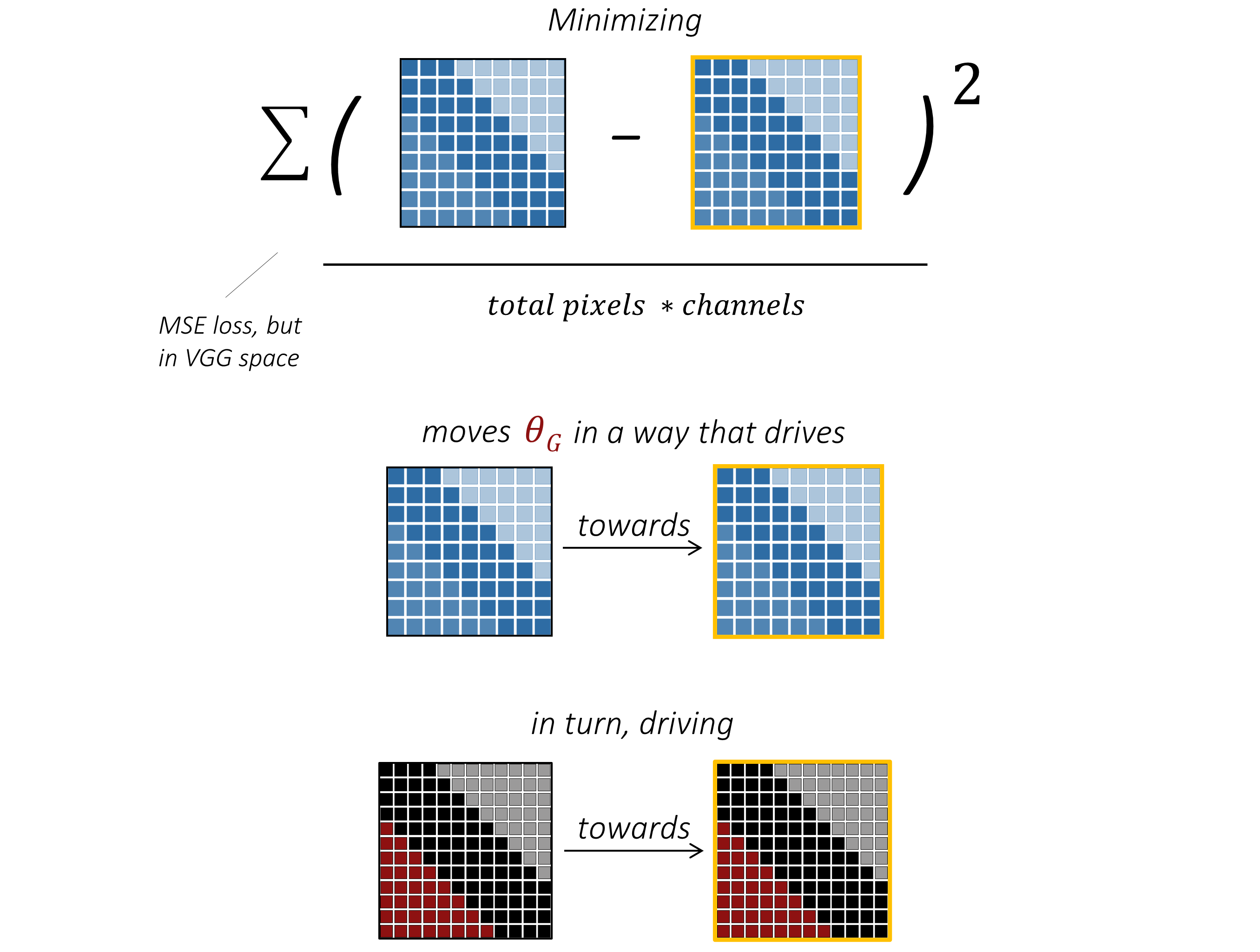 而在第二次过程中,我们的目标仅是更新判别器的参数 $\theta_D$,这些参数在反向传播的方向上位于 $\theta_G$ 的上游。