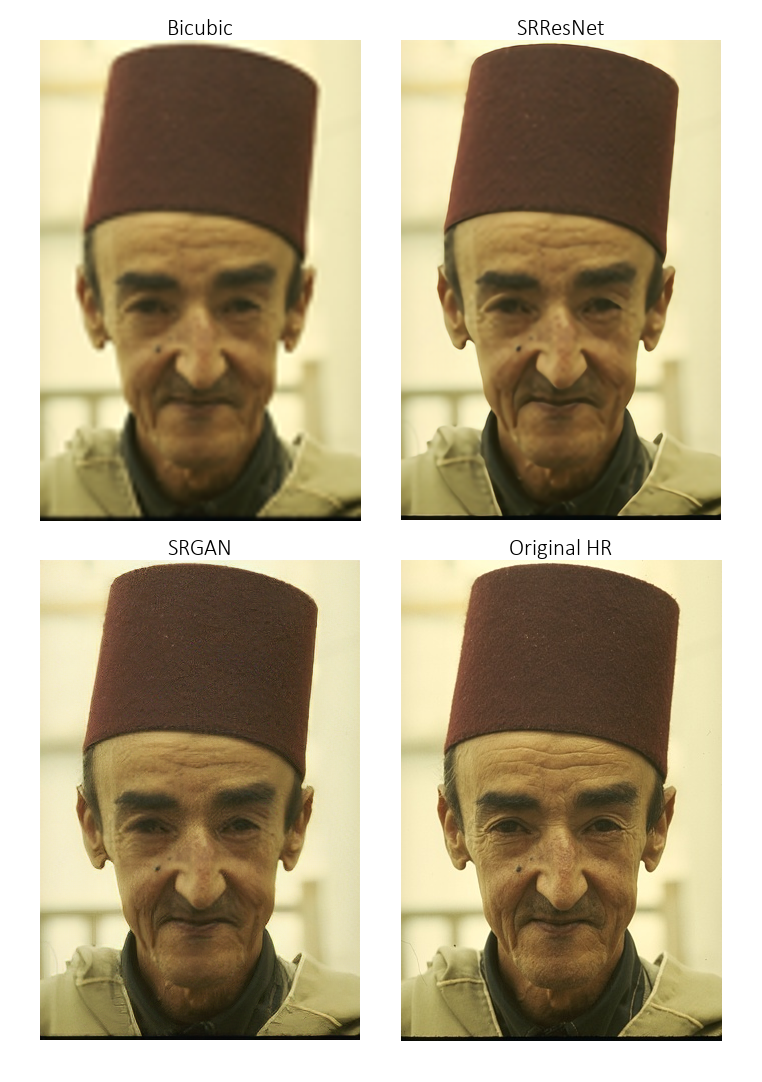 嗯,需要打个大大的折扣。论文反复强调,PSNR 和 SSIM 并不能真正反映超分辨率图像的质量。相比之下,SRResNet 生成的图像虽然更不真实、过于平滑,但其 PSNR 和 SSIM 得分却更高。这也是为什么论文作者进行了主观评分测试,而这种测试显然超出了我们的能力范围。
