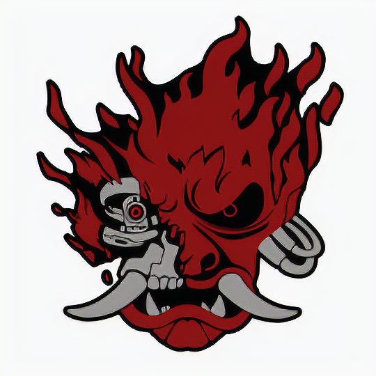 作为参考图像,我们可以考虑这张来自《赛博朋克2077》的酷炫武士标志由Reddit用户/u/shapanga创作,我在此已获得其许可并加以使用。