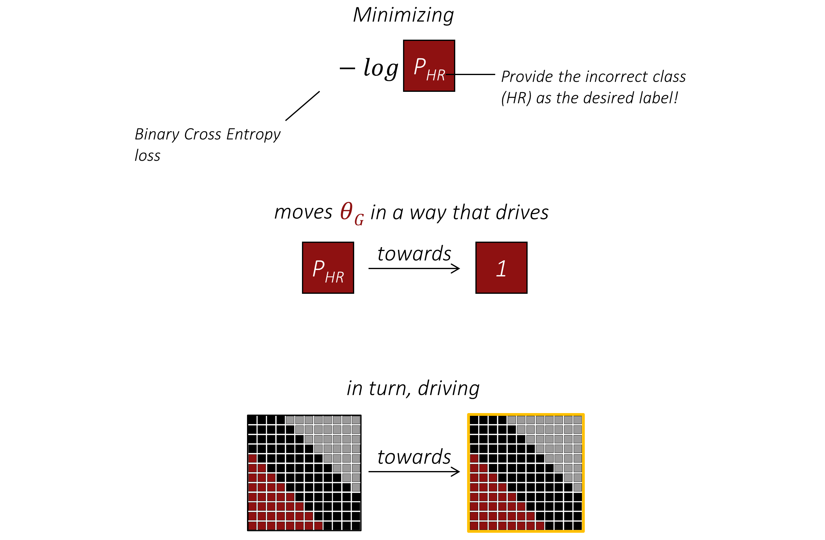 在第一次过程中,我们的目标是通过损失函数对生成器参数 $\theta_G$ 的梯度来更新 $\theta_G$;而此时生成器确实是计算图的一部分,我们会在该计算图上执行反向传播。