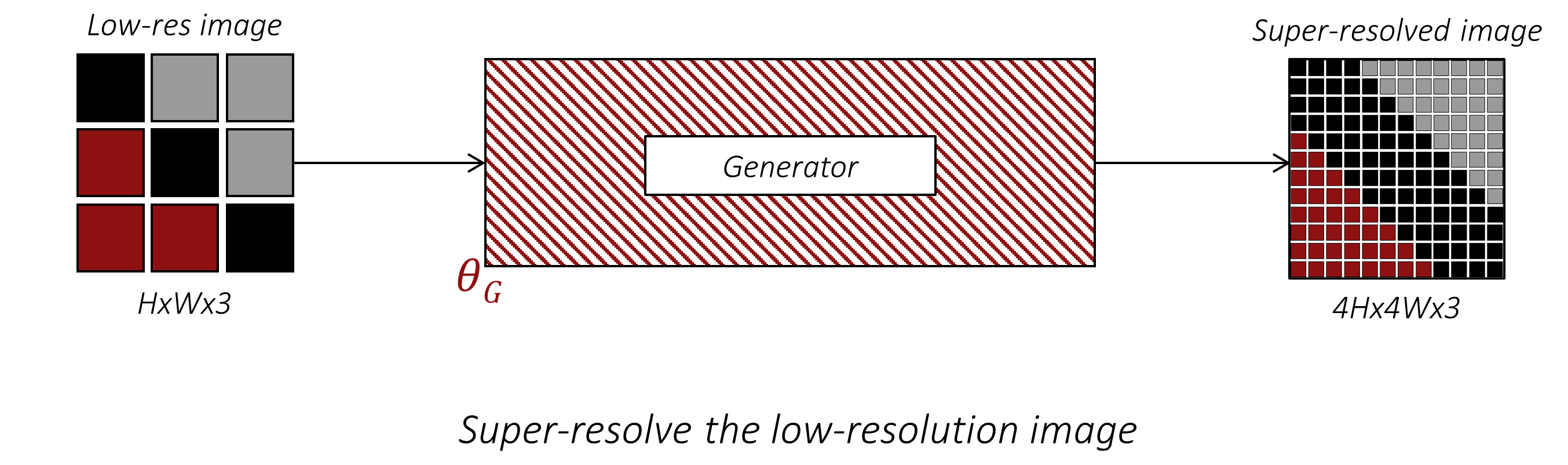 生成对抗网络 (GAN)。源自另一篇具有里程碑意义的论文,GAN 是一种机器学习框架,其中两个网络相互对抗。生成模型(Generator)试图生成与训练数据分布完全一致的数据——在本例中就是更高分辨率的图像;而判别模型(Discriminator)则试图通过学习区分真假来阻止这种伪造行为。随着双方技能的提升,它们可以通过彼此的预测来不断完善对方。最终的目标是让生成器所创造的“虚构”图像在人类眼中与真实图像无异。