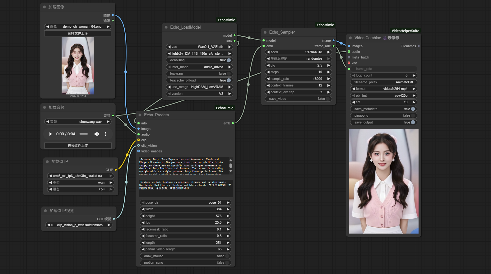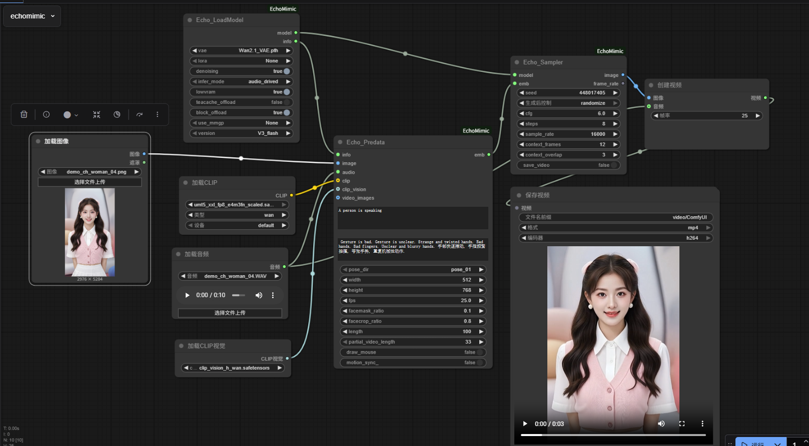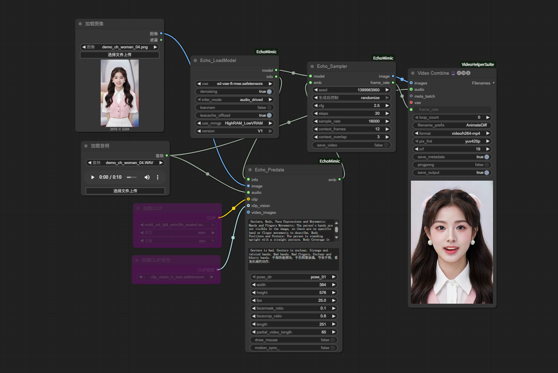 使用 ComfyUI_EchoMimic 后