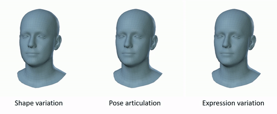 - 动态细节逼真:借助姿态相关的修正混合变形(blendshapes),自动处理下颌转动和眼球运动带来的皮肤拉伸,表情流畅无破绽。