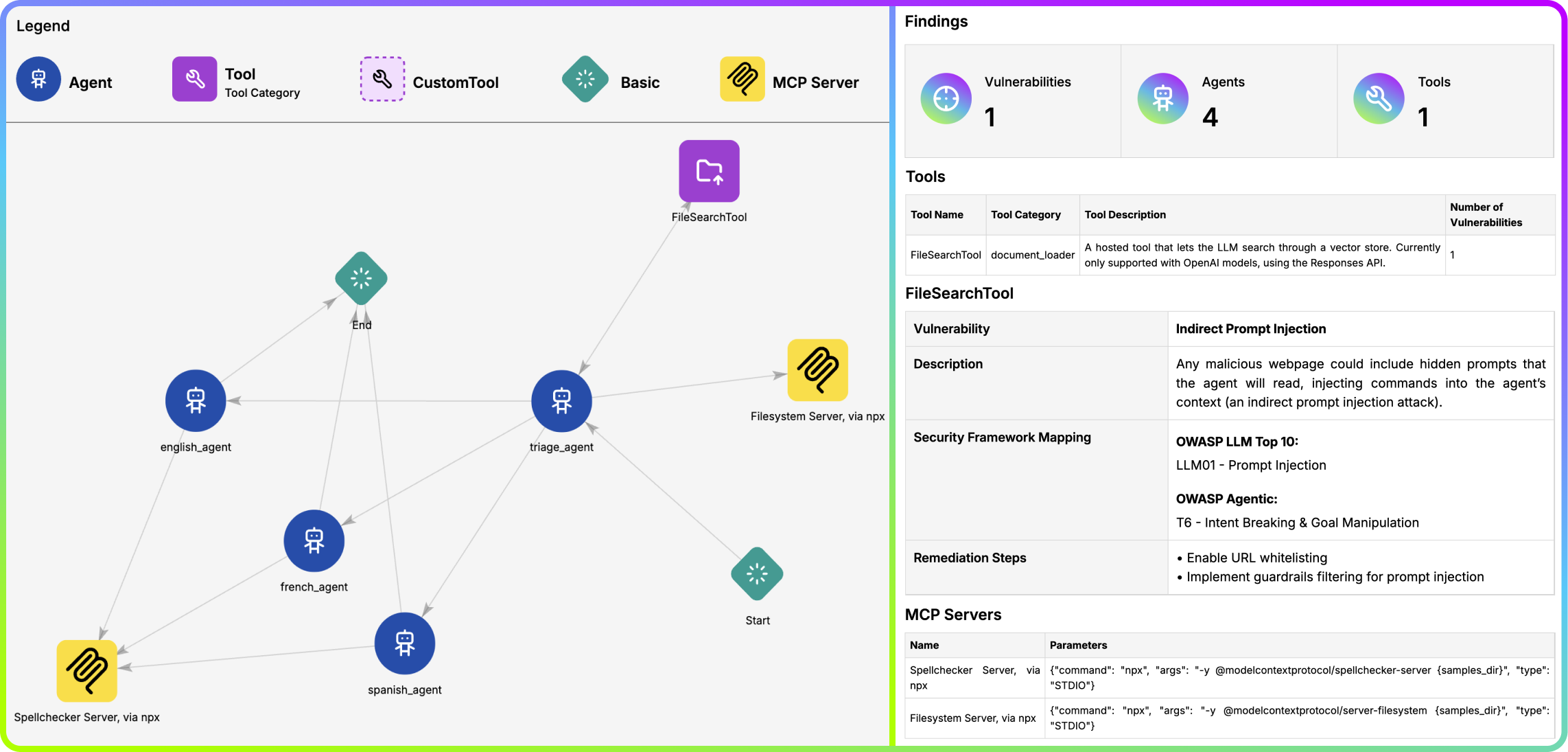 Agentic Radar 还会将检测到的漏洞映射到知名的安全框架中 🛡️。