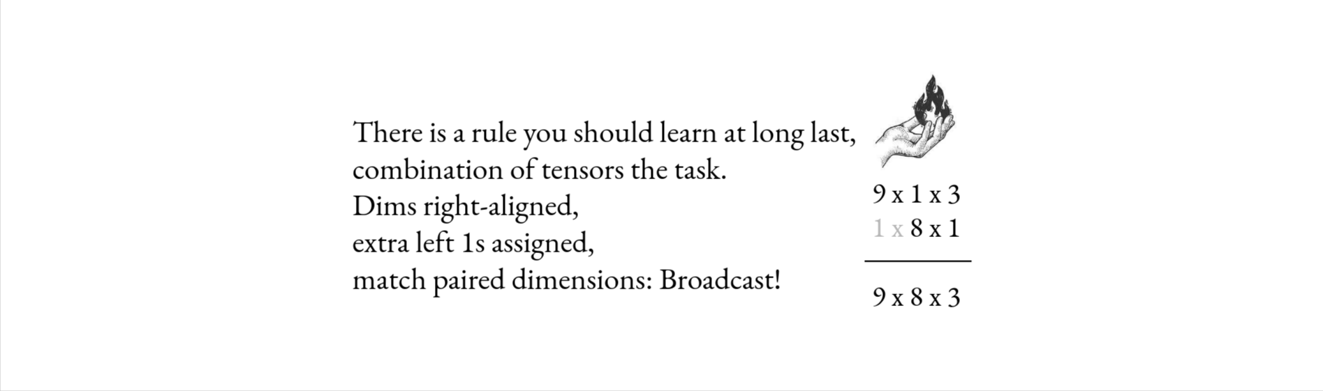 在学习像 PyTorch 或 NumPy 这样的张量编程语言时,人们很容易依赖标准库(或者更坦率地说,StackOverflow)来找到解决所有问题的“魔法函数”。但实际上,张量语言具有极强的表达能力,你可以通过基本原理和巧妙地利用广播机制来完成大多数任务。