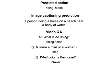 $ python predict.py model.pth vqa --video sample_data/riding_horse.avi --text "这匹马是什么颜色的?"