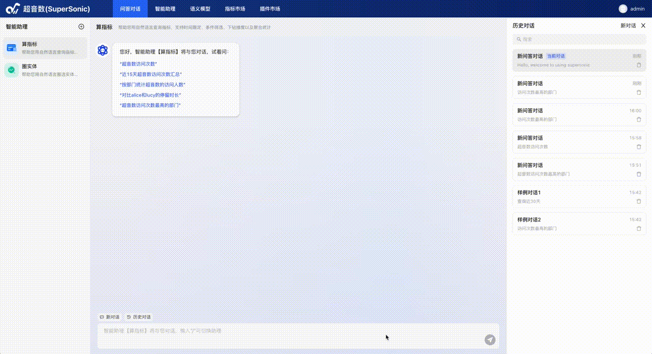 通过引入统一的语义层,SuperSonic 让对话查询能基于经过治理的准确数据模型进行,既利用语义信息增强大模型的理解能力以减少错误,又将复杂的 SQL 逻辑卸载到语义层处理,从而大幅降低技术门槛并提升查询准确率。用户只需通过自然语言提问,即可获得精准的数据分析结果和可视化图表。