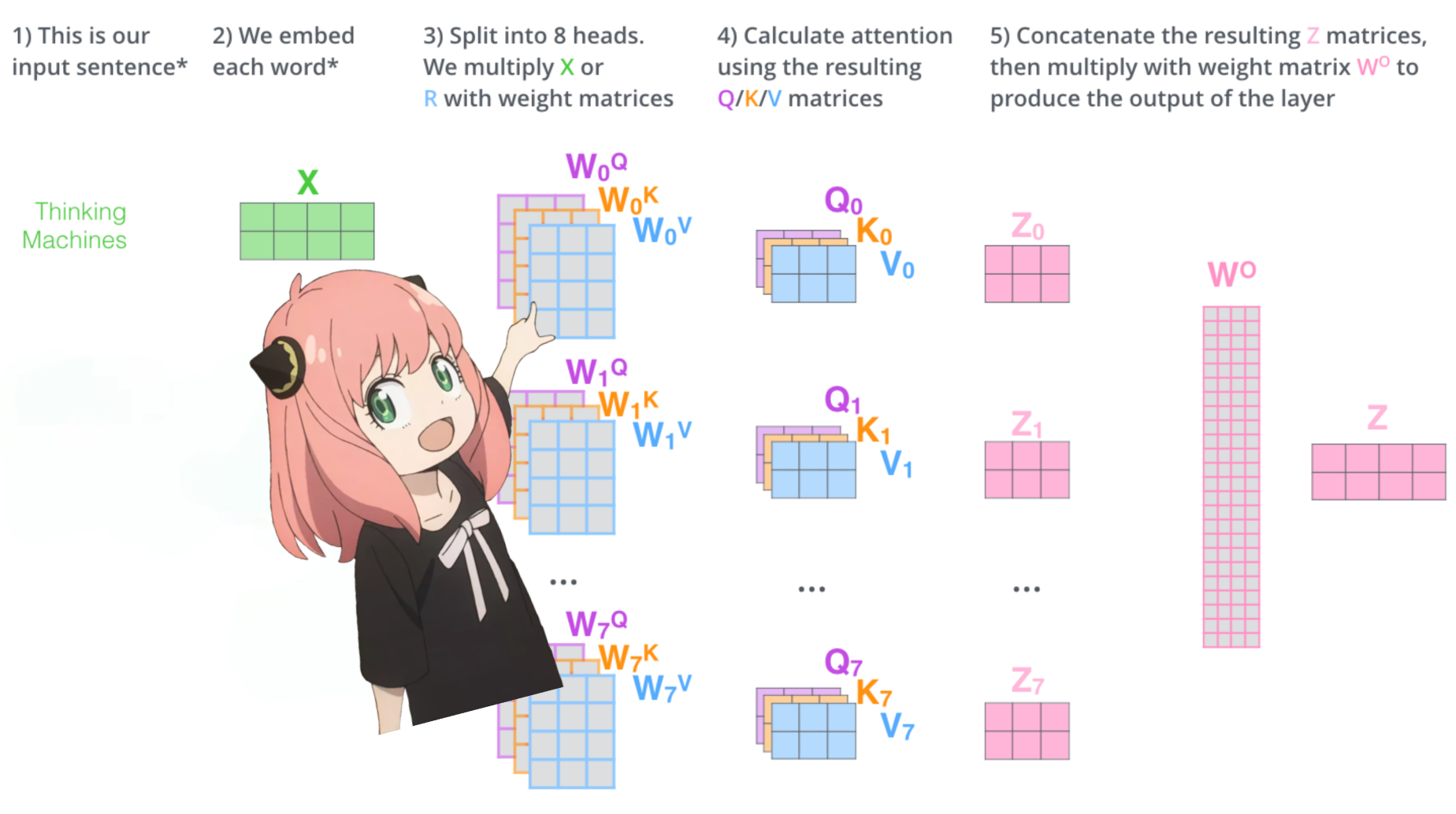 对每一步计算中矩阵维度的变化都进行了完整标注,让你能够更直观地把握整个计算流程。原理讲解