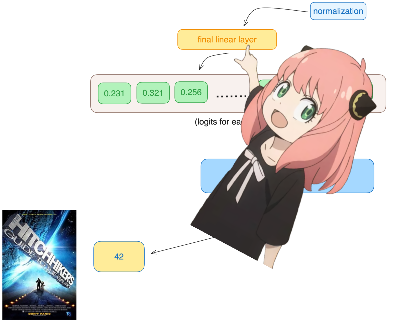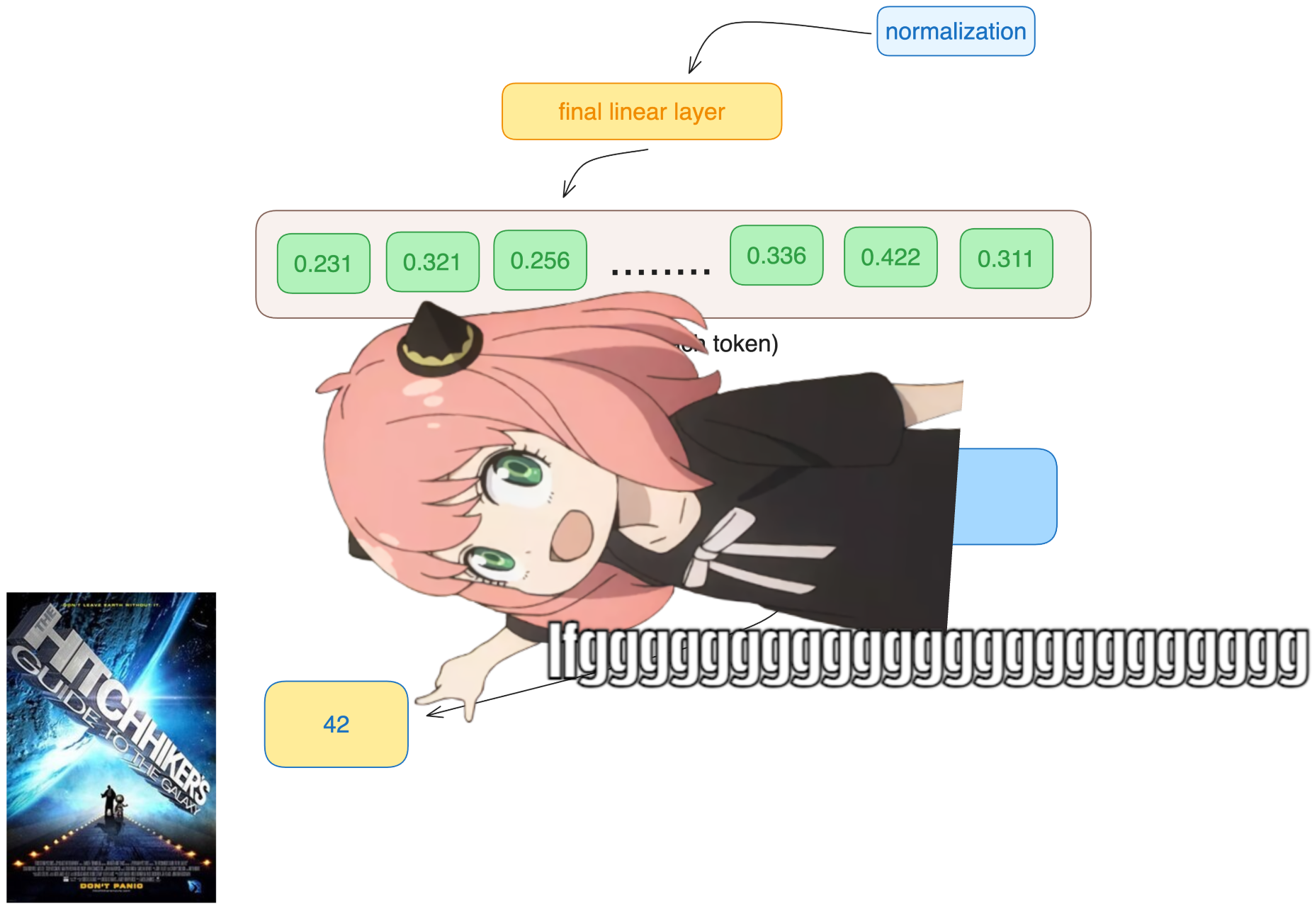 基于第2个标记的预测结果: [' answer', ' Hitch', ' universe', ' question', ' ultimate', ' meaning', ' hitch', ' Universe', ' Answer', ' reason']