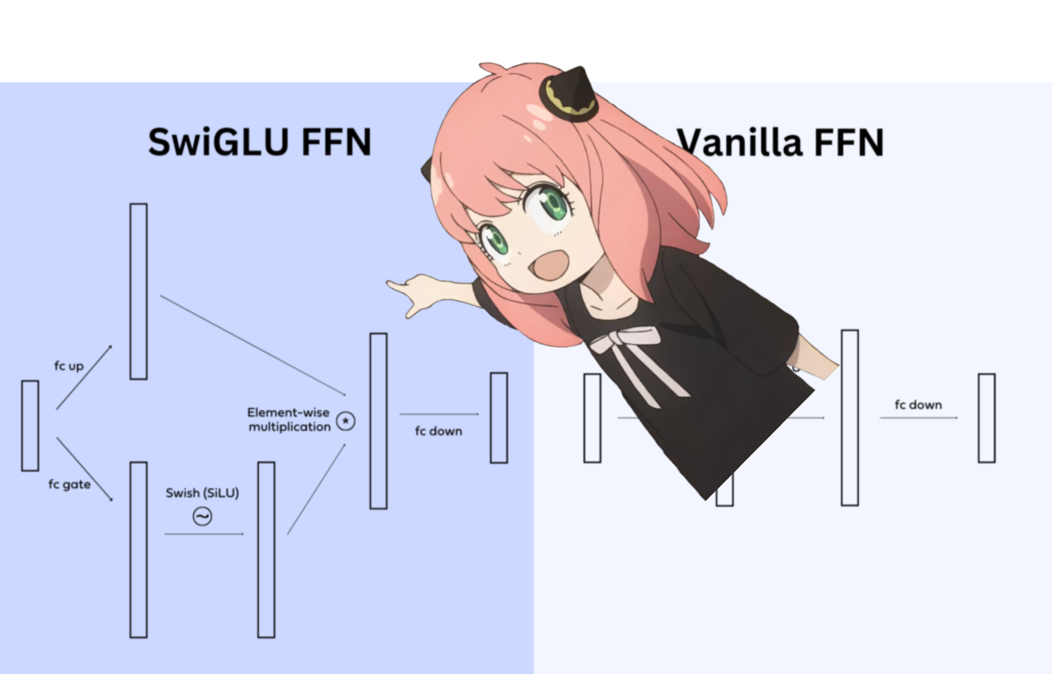 - 前馈网络(FFN):每个标记向量都乘以相同的权重矩阵W1、W2、W3来得到结果,过程中并不使用其他标记。设想如果输入标记的数量为17个,那么FFN的计算可以简化为:[17×4096] × [4096×14336] × [14336×4096] = [17×4096]。这实际上等同于每次输入一个标记,然后将17个结果拼接成一个矩阵,即:17次([1×4096] × [4096×14336] × [14336×4096] = [1×4096])= 17×[1×4096] => [17×4096]。因此,在前馈层中,每个标记的计算实际上并没有与其他标记发生交互。