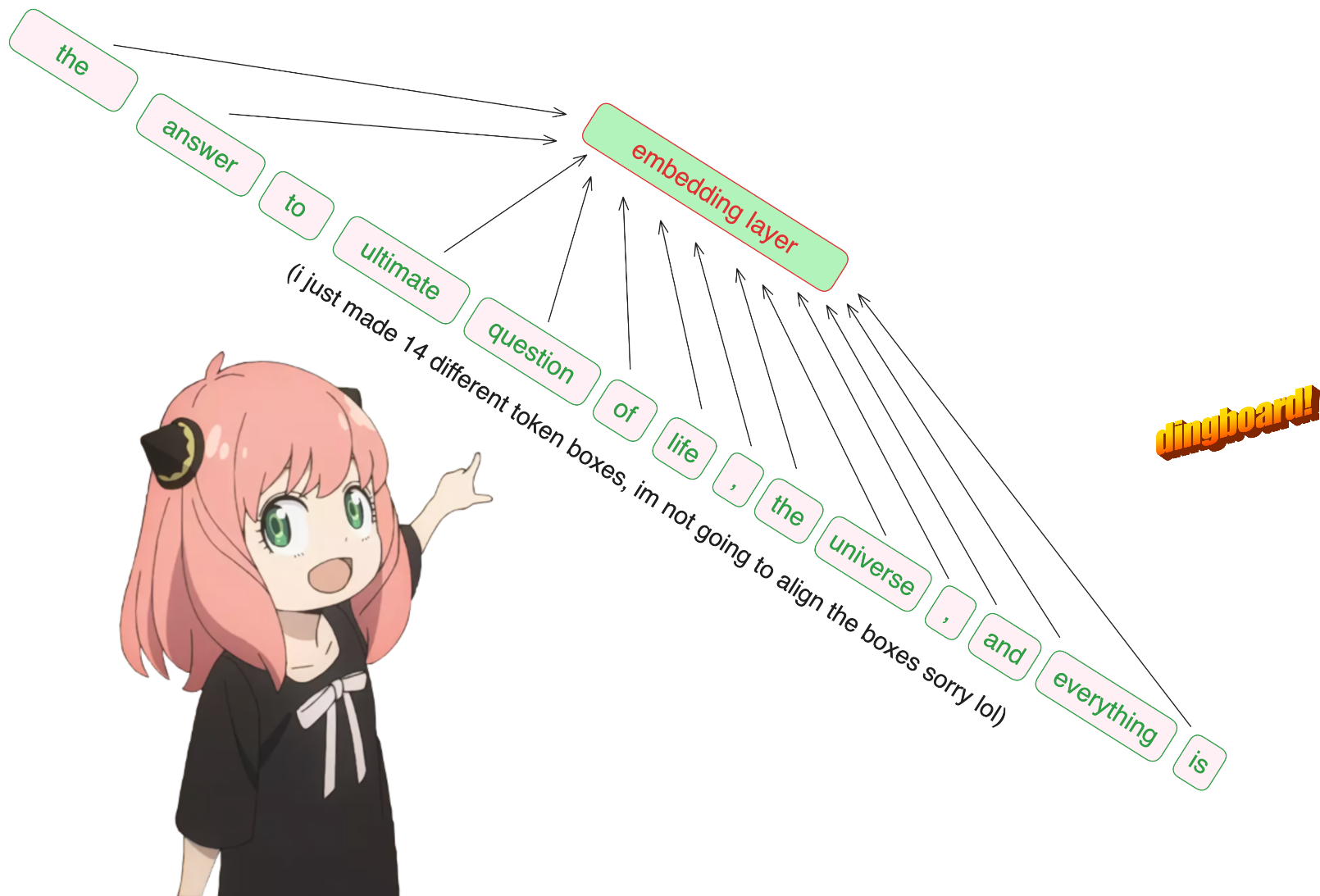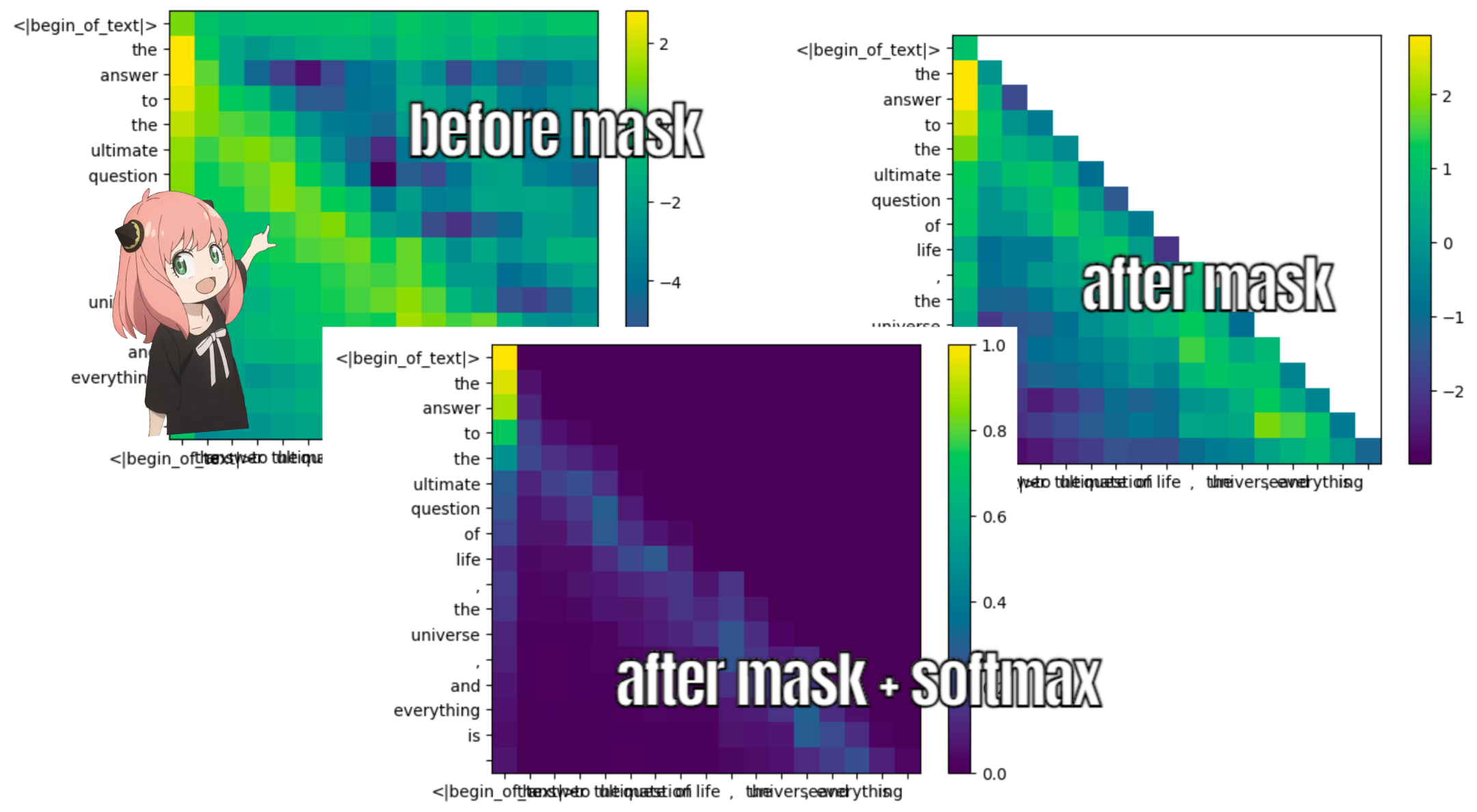 # 可以看出,由于可以看到未来的标记,每个标记的嵌入能够更准确地预测“它后面的下一个标记”(有点像“作弊”)