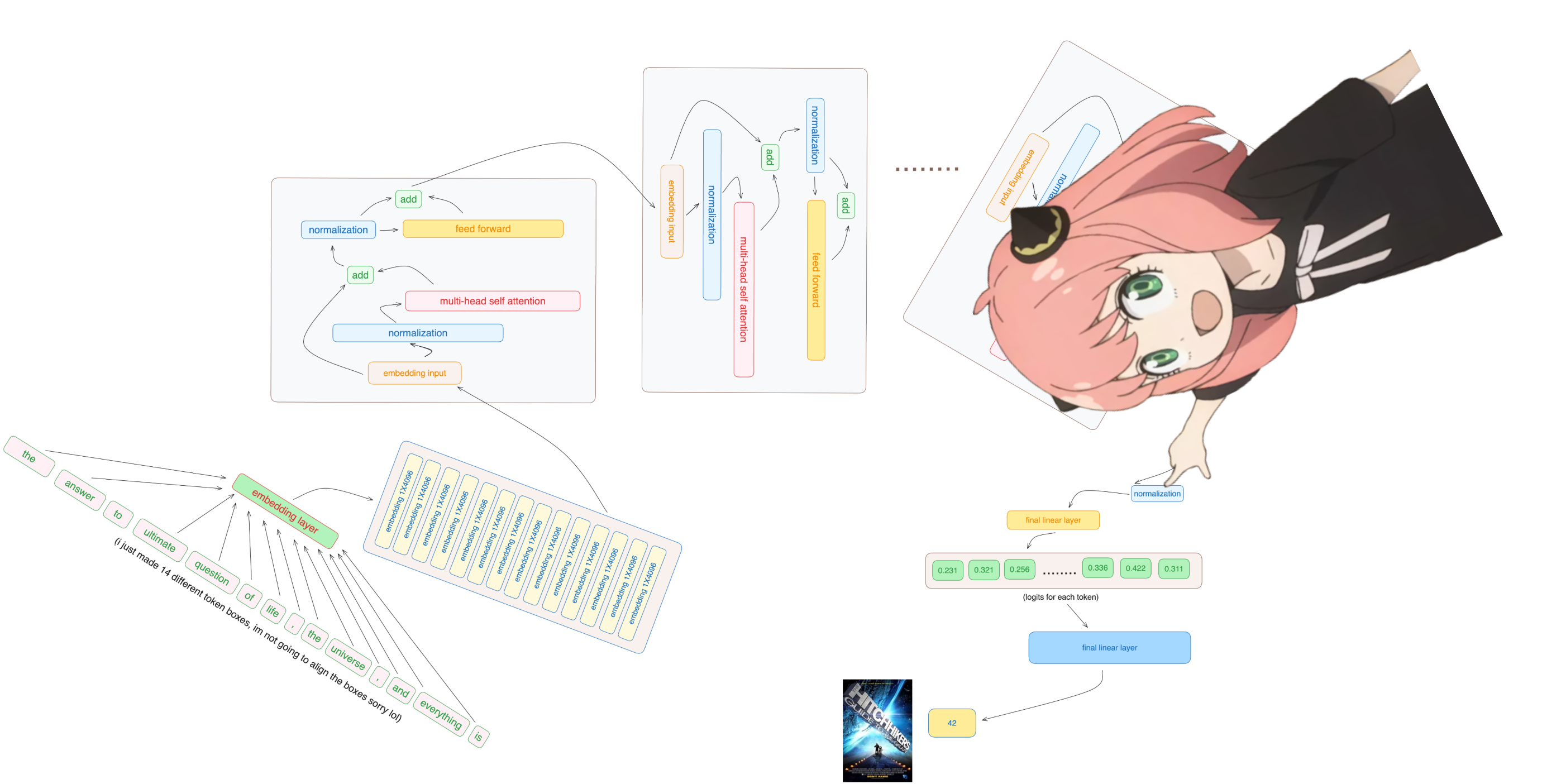 - 一切都准备好了,让我们完成所有32个Transformer块的计算吧。祝阅读愉快:)