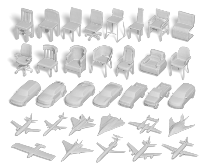 ShapeNetCore [链接]:55个类别下的51,300个模型。