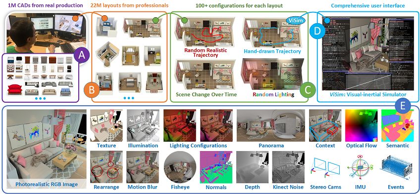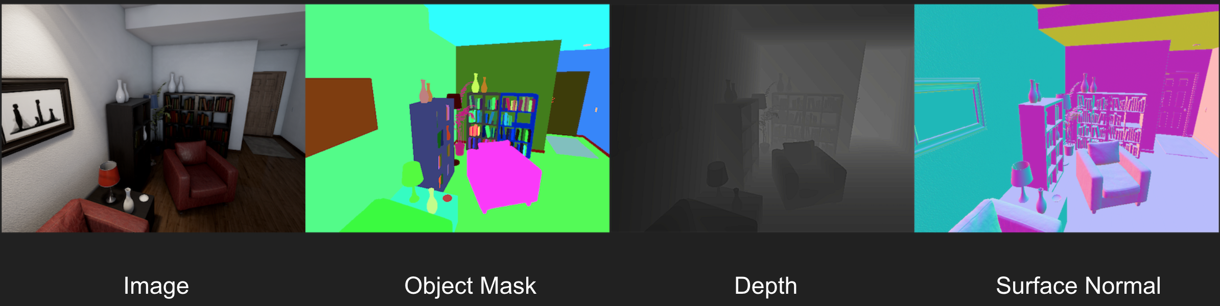 该数据集包含超过4.5万个不同的场景,每个场景都由人工创建了逼真的房间和家具布局。所有场景都在对象级别进行了语义标注。