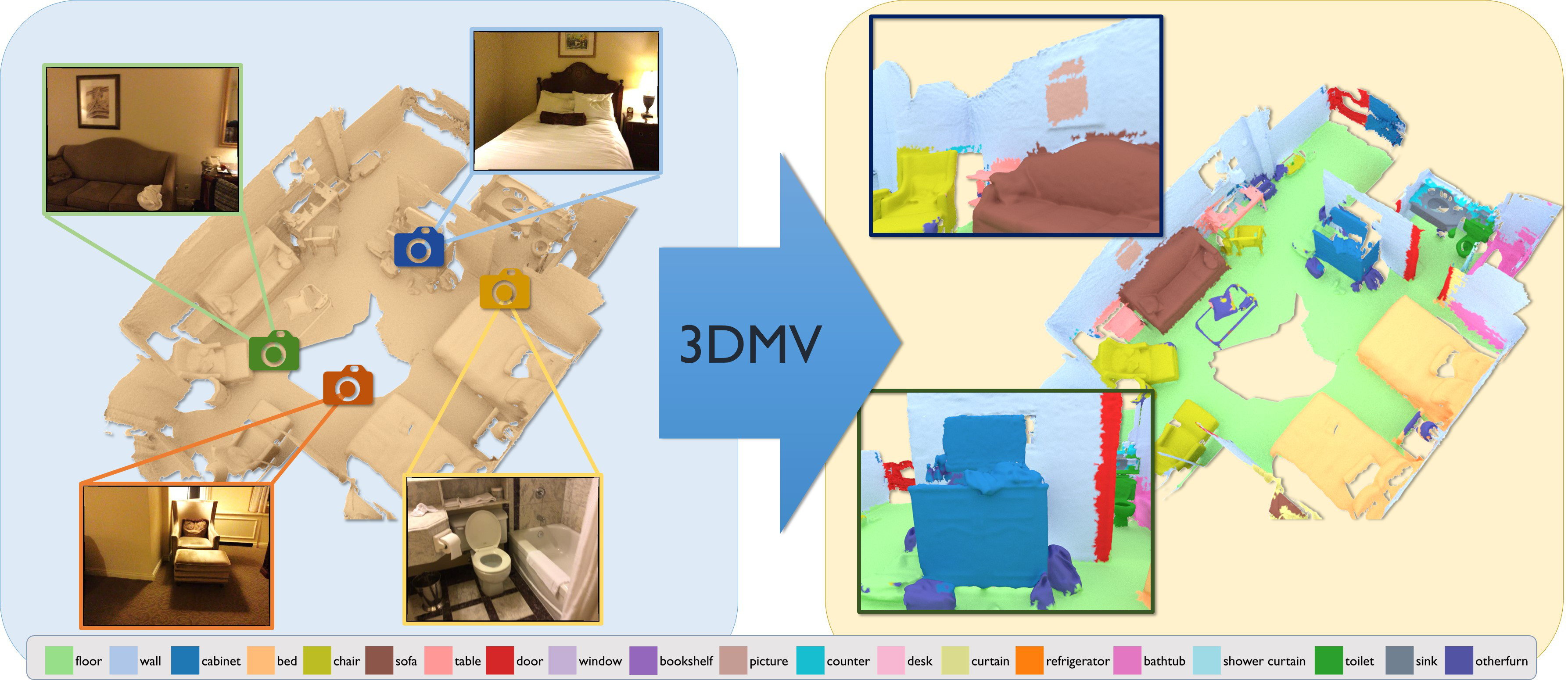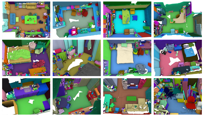 一个包含250万视角的RGB-D视频数据集,覆盖1,500多次扫描,附有3D相机姿态、表面重建以及实例级语义分割标注。