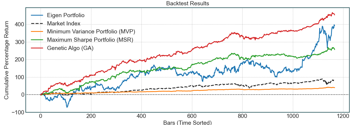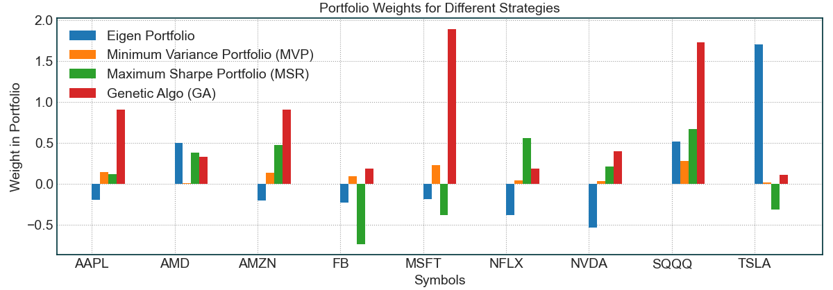 - 这是我们自己实现的一种基于遗传算法的投资组合策略,同样旨在最大化夏普比率,但方式更为稳健。通常情况下,这种策略能够提供比其他策略更稳健的投资组合。