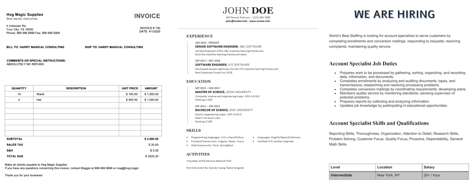 发票 / 简历 / 招聘广告