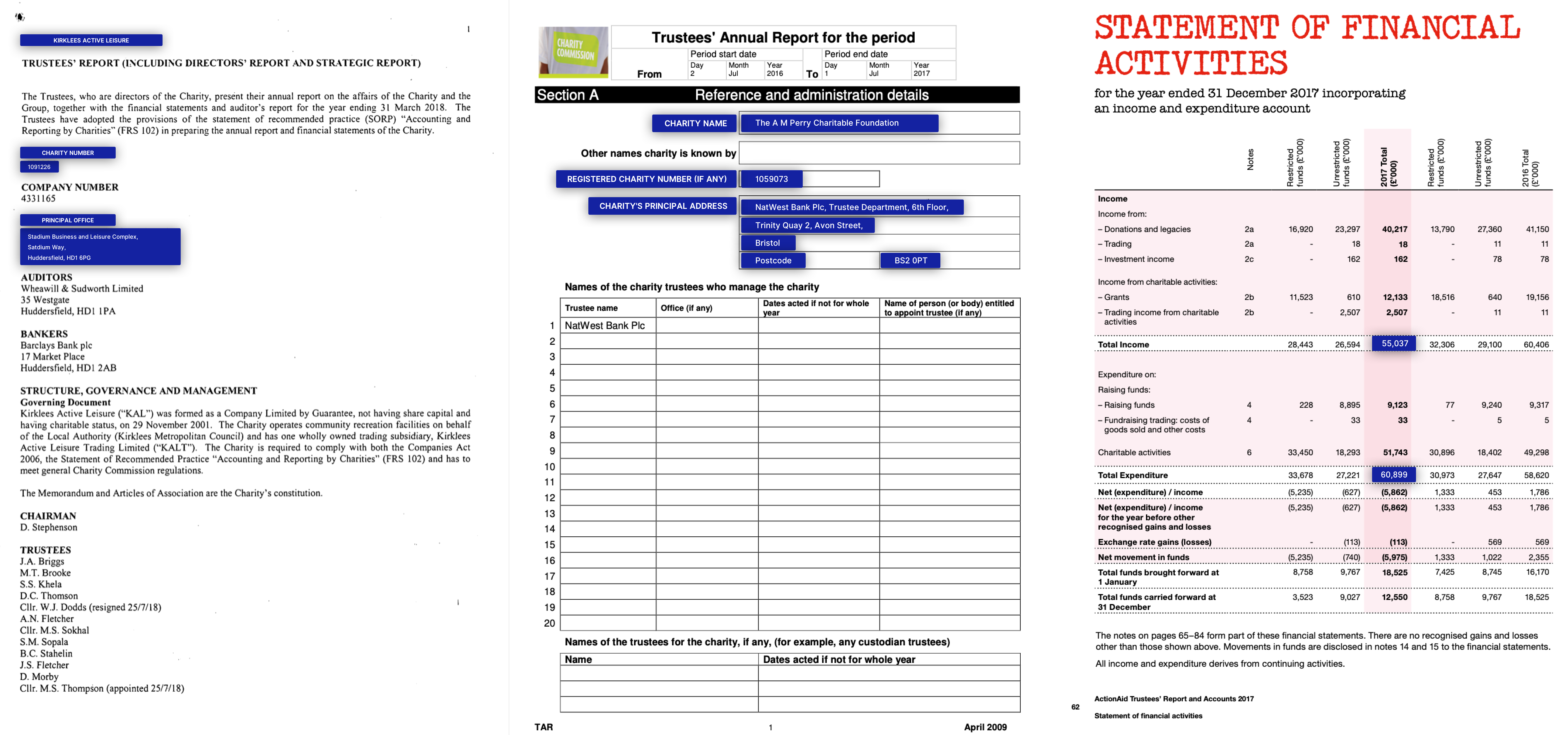真实商业应用示例及Kleister数据集中的数据(关键实体以蓝色标注)