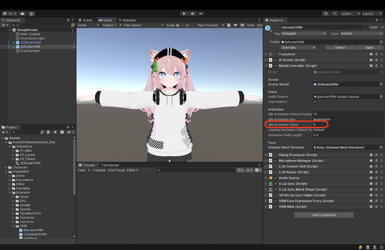或者,如果你希望搭建 AITuber(AI 虚拟主播),可以尝试使用内置了 SocketServer 的 ChatdollKit AITuber Controller 提供的 AITuber 示例。