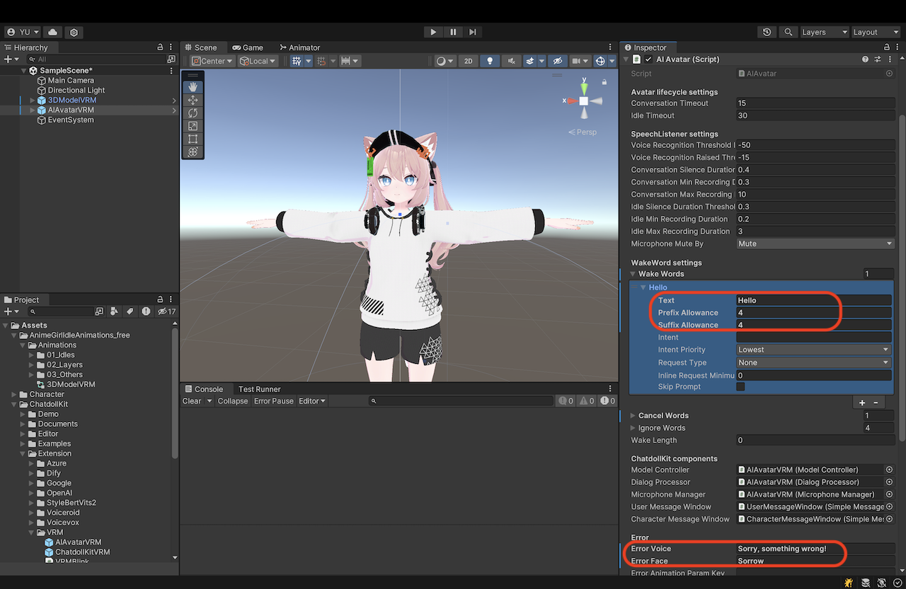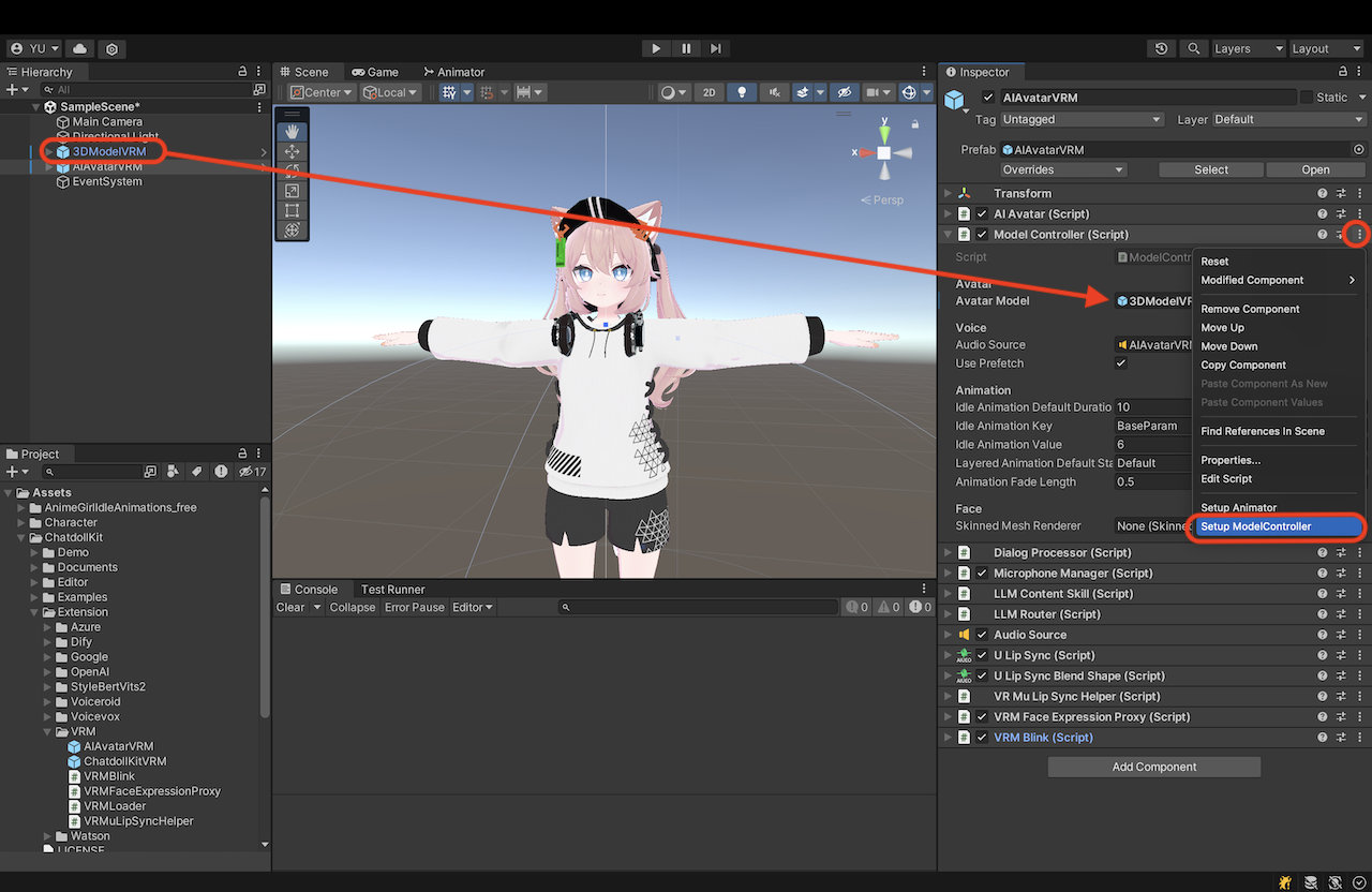 - 导入最新版本的 ChatdollKit Unity 包。控制台可能会显示一些错误。