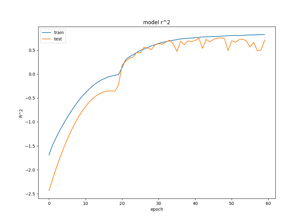 以下图片展示了损失函数、平均绝对误差、R^2 以及实际数据与预测数据的对比趋势: