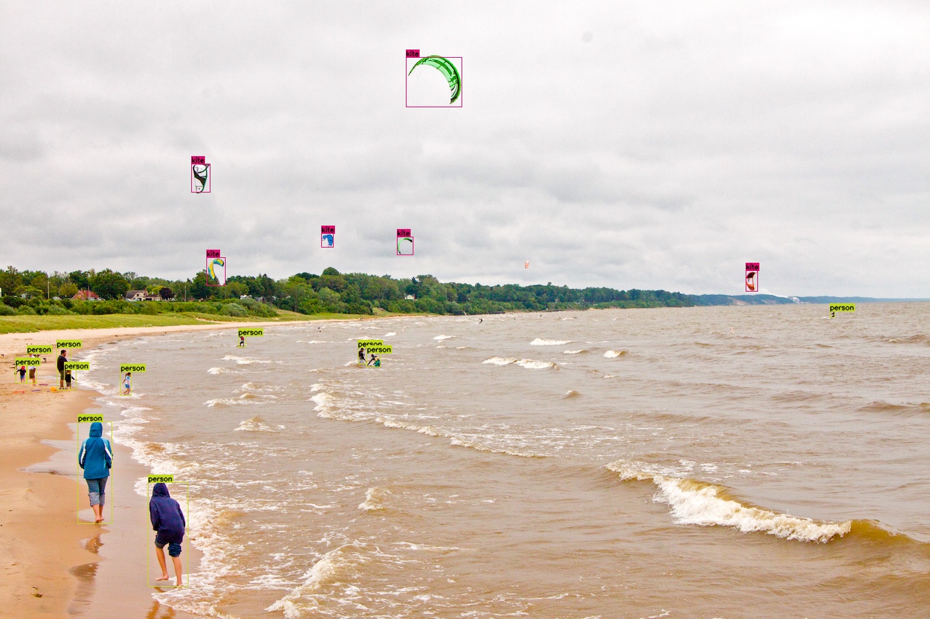 (风筝检测结果是在输入图像分辨率为 1344x896 的情况下得到的)
