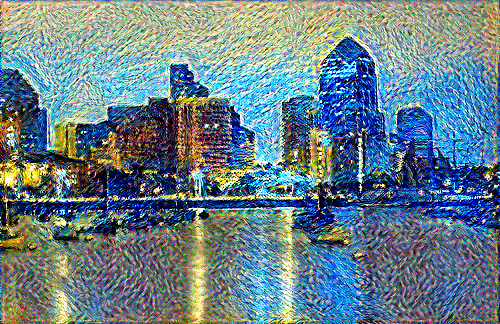 python neural-art-tf.py -m vgg -mp ./vgg -c ./images/sd.jpg -s ./images/style.jpg -w 800
