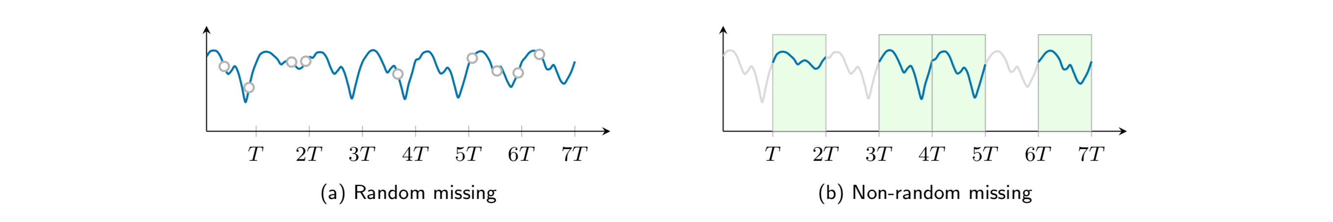 图 1: 时空设置下的两种经典缺失模式。
