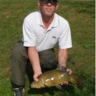 它是不是一张男人拿着丁鲷(tench)的图像?