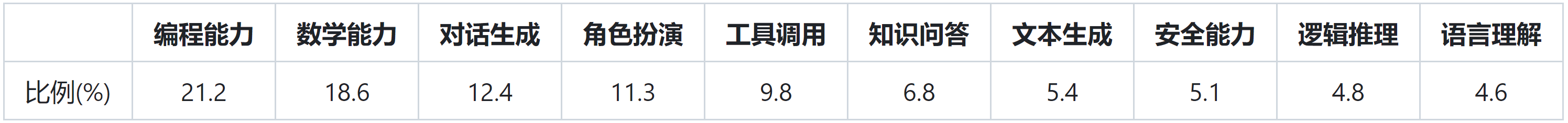 对齐阶段,不同能力类型数据的采样比例如下所示: