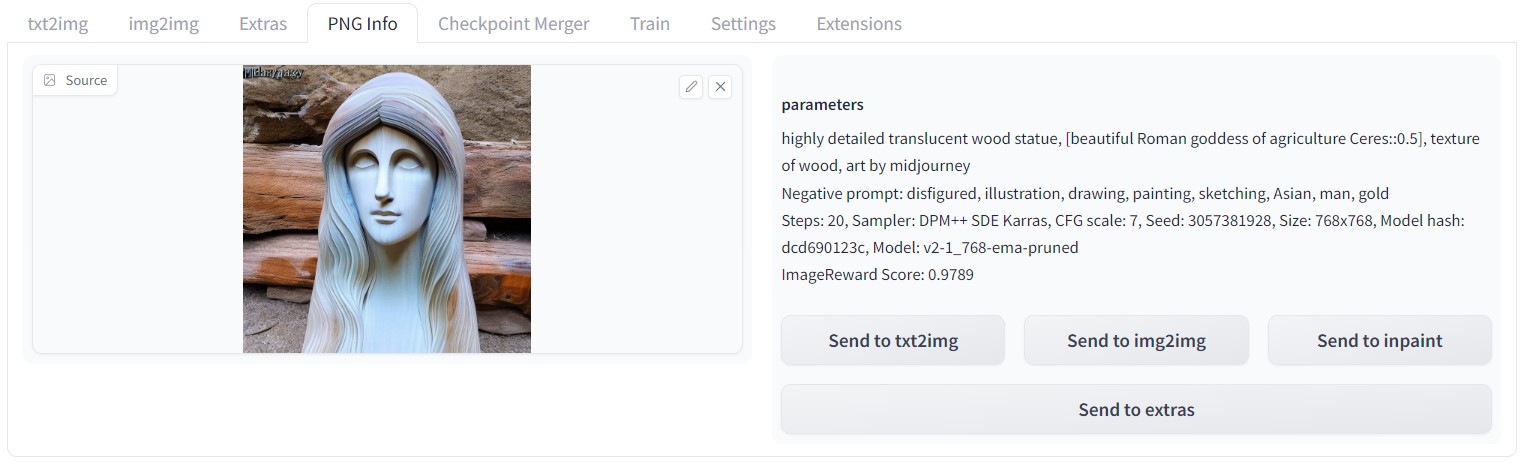 - 在画廊下方的图像信息底部查看 ImageReward 分数。
