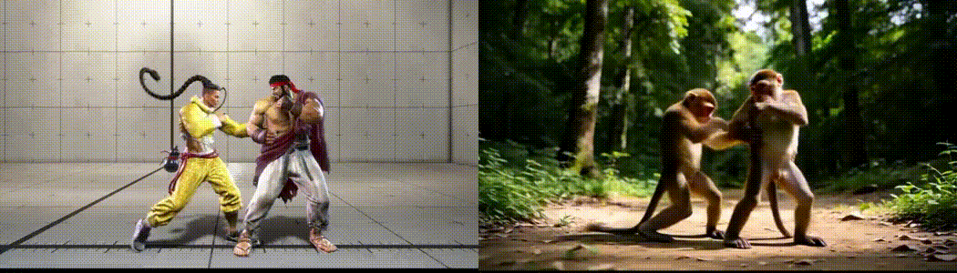 - 精准的多角色调度:SCAIL 能理解复杂的空间逻辑,让多个角色在打斗中保持独立的肢体边界,自然处理前后遮挡与交互接触。