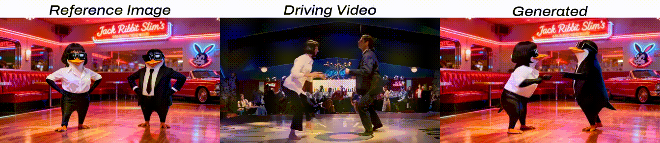 - 影院级流畅动态:通过上下文学习进行时序推理,生成的动作序列平滑自然,彻底消除了帧间闪烁,达到可直接商用的 studio-grade 水准。